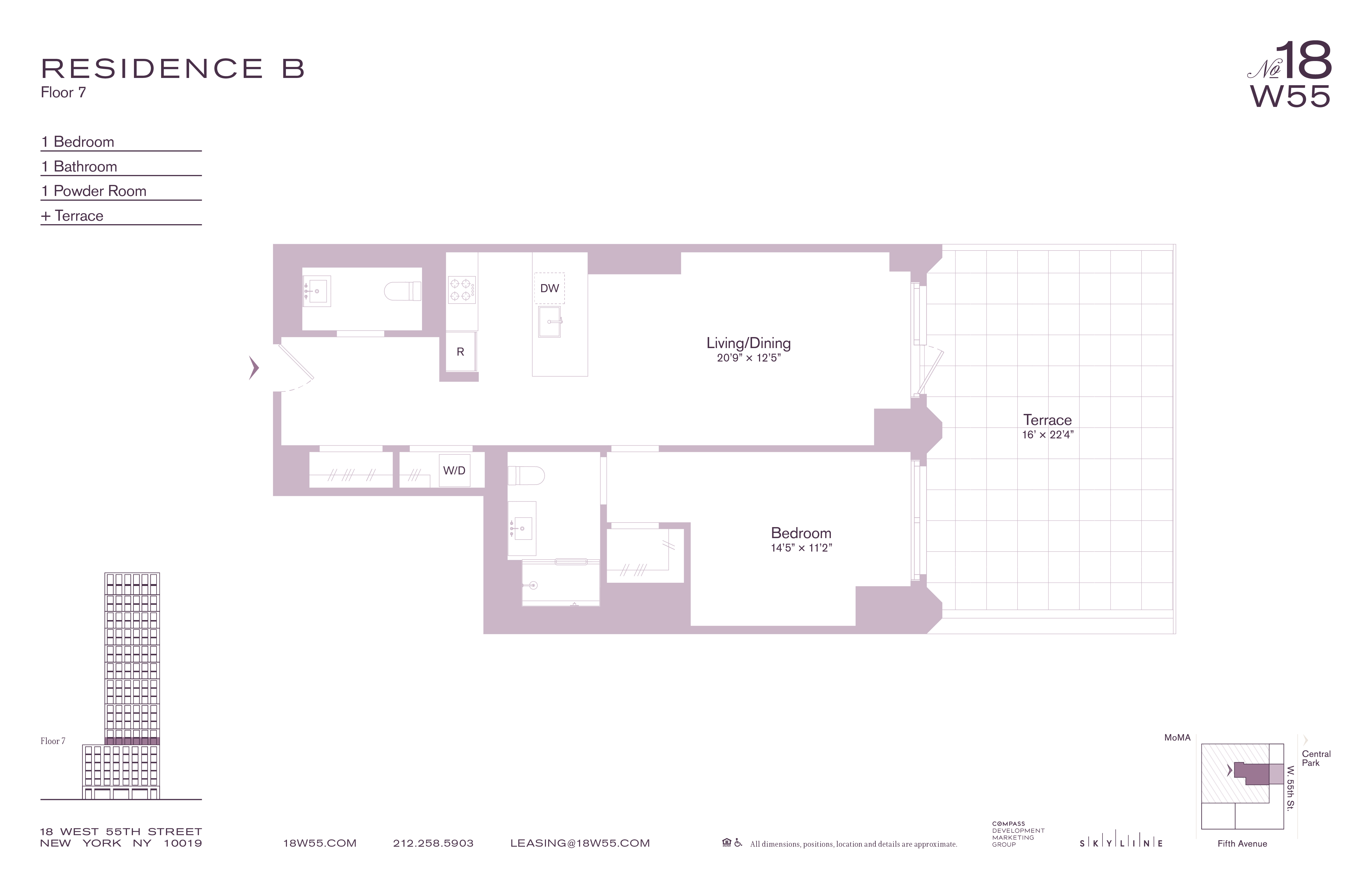 At 18W55, studio, one-, two-, three-bedroom apartments and penthouses offer generous open layouts for effortless living in the heart of Manhattan.